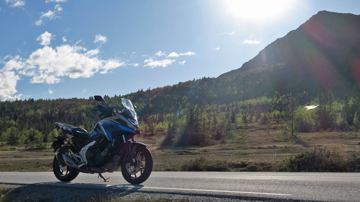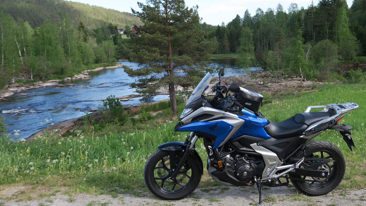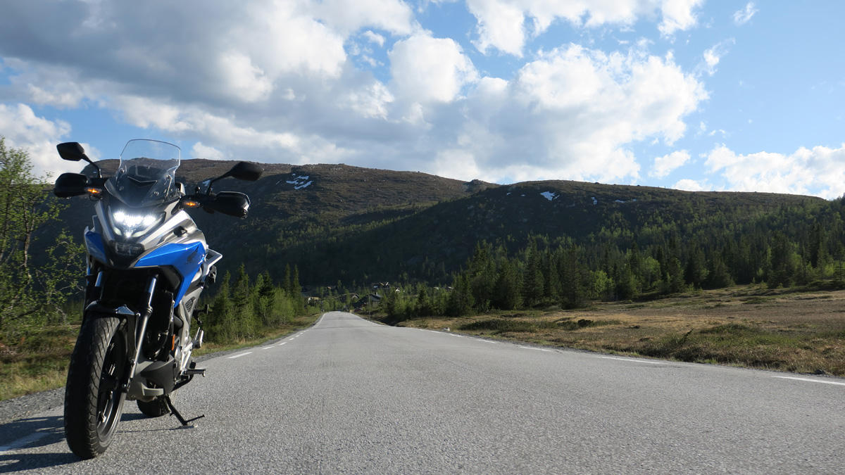 Etter Åmot blir det mulighet til å svinge litt også. Det er skikkelig deilig å kunne dra på gjennom svingene. NC’en drar svingene så smidig og stabilt, og uten behov for korrigeringer. Jeg merker at dekkene begynner å synge på siste verset. Treffer jeg langsgående asfaltskjøter, kanter eller spor logrer det litt. I svingene er det fortsatt rikelig mønster igjen. Noen lange motorveietapper har tært litt for mye på midtseksjonen – det merkes. Jeg har et sett nye dekk liggende i garasjen hjemme, en ting er å kjøre på dekk som sporer når det er tørr asfalt, på våt vei føles det ikke like betryggende. Å kjøre motorsykkel skal være moro og føles greit, så jeg bytter nok dekk litt tidligere enn strengt tatt nødvendig.