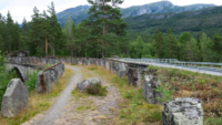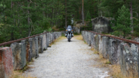 Etter Hovin er veien fortsatt underholdende og jeg nyter svingene. Jeg legger inn et stopp ved Mæle bru i sydenden av Sandvatn. Den vakre brua stod ferdig i juli 1896 og var i bruk fram til 1939. I dag er den brukt som en del av sykkelveien rundt Sandvatn.