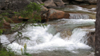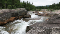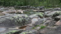 Når jeg er ferdig med 60-sonen nede i dalen har jeg en fin kjøring på god asfalt ned mot Austbygda. Veien følger Austbygdåa og jeg tar en stopp på svaberga ved elva før jeg kjører ned til bygda.