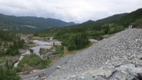 Jeg har sett Tunhovdfjorden med mindre vann enn nå. Enkelte ganger når jeg har kjørt her har vannstanden vært helt på minimum. Jeg liker den best når det er litt vann, de steinete og bare breddene som kommer fram når vannstanden er lav er ikke pene. Jeg stopper ved Tunhovddammen. Demningen som er 275 meter lang og 37 meter høy ble rehabilitert i 2013-2014, og har fått en vakker steinfylling. Det er stor stein som er brukt for å dekke dammen, og den er ikke bare tippet ut, nei steinene er lagt pent i en jevn og pen helling. Damanlegget er blitt veldig fint og det er god plass til å stoppe på selve dammen og på parkeringsplassen på nordsiden. Les om det nye anlegget her.